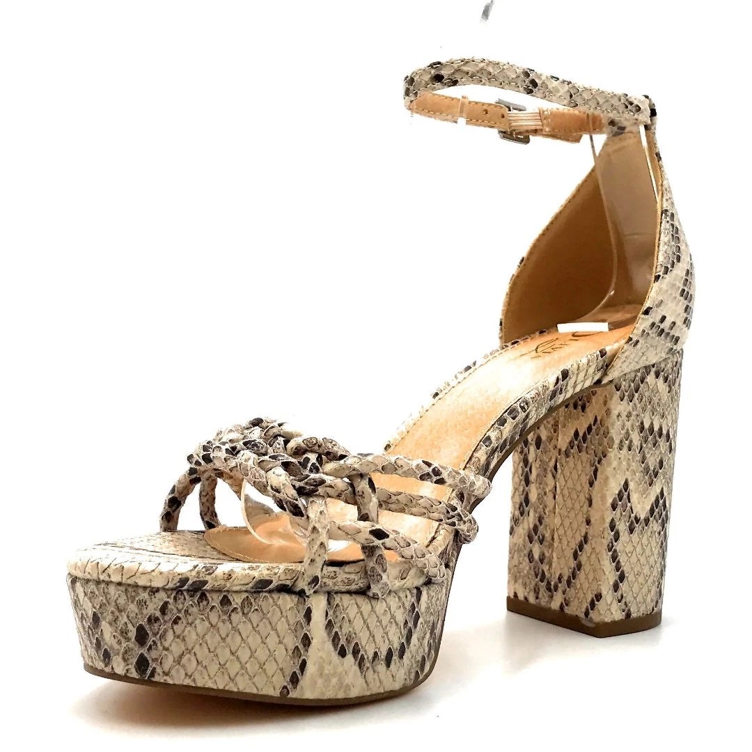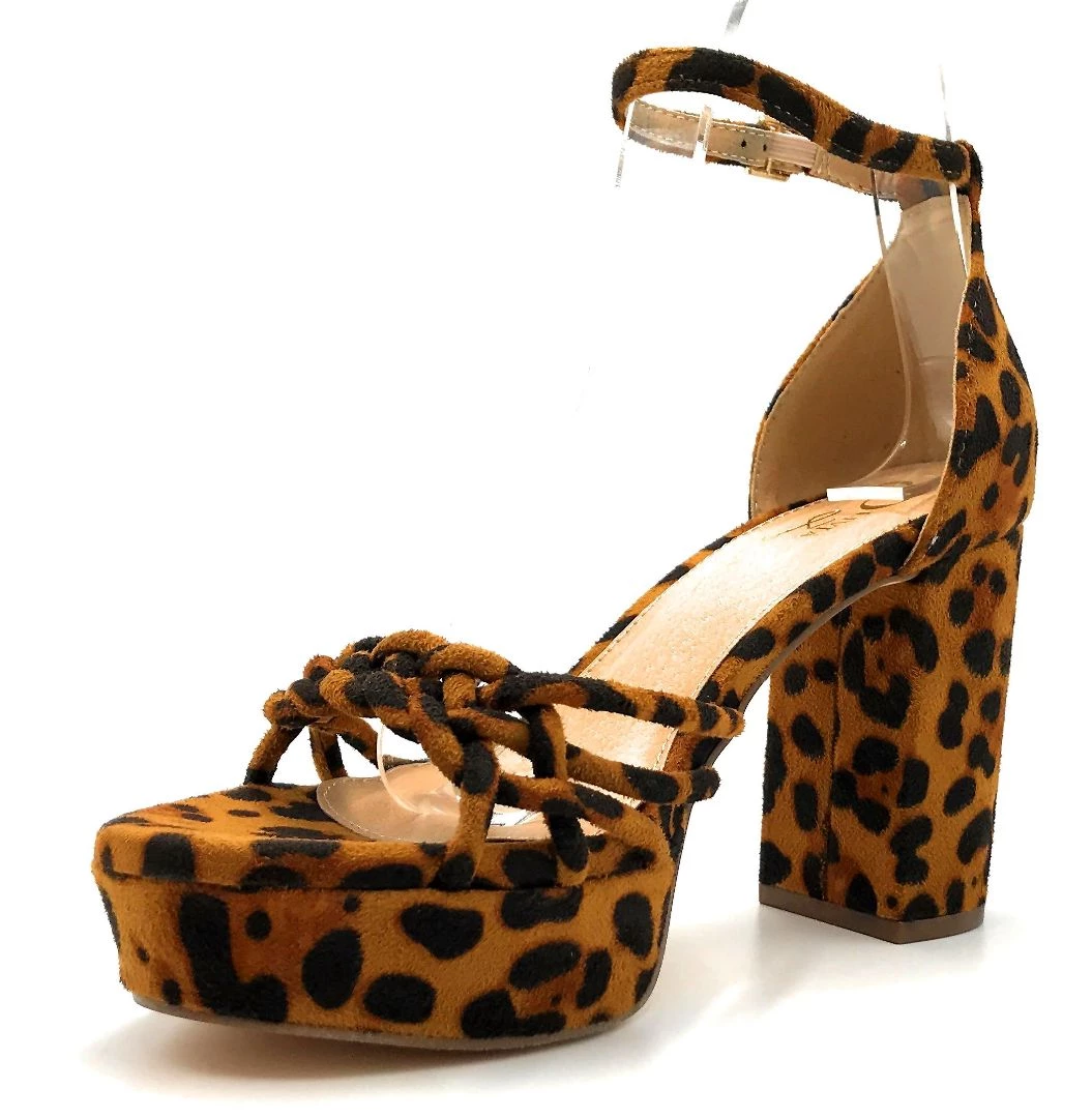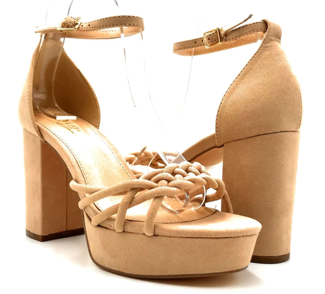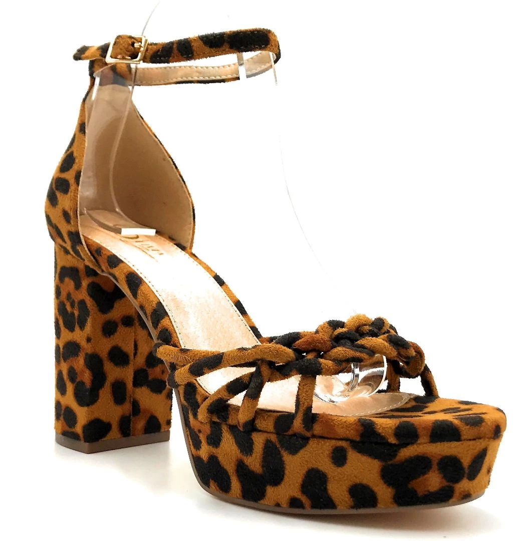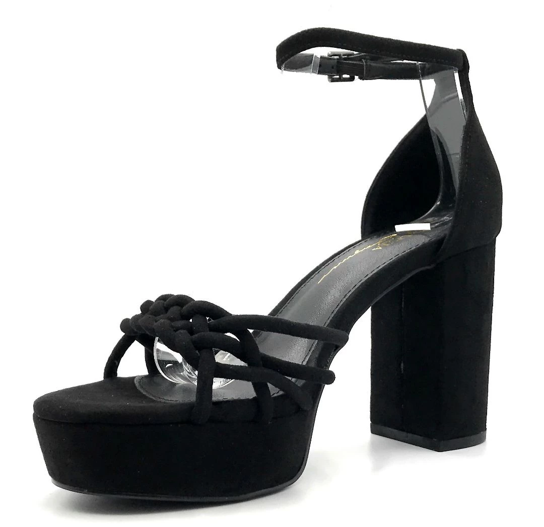 Olivia Jaymes Women Open Toe High Block Heel Platform Sandal With Twisted Top Knot Strap Design