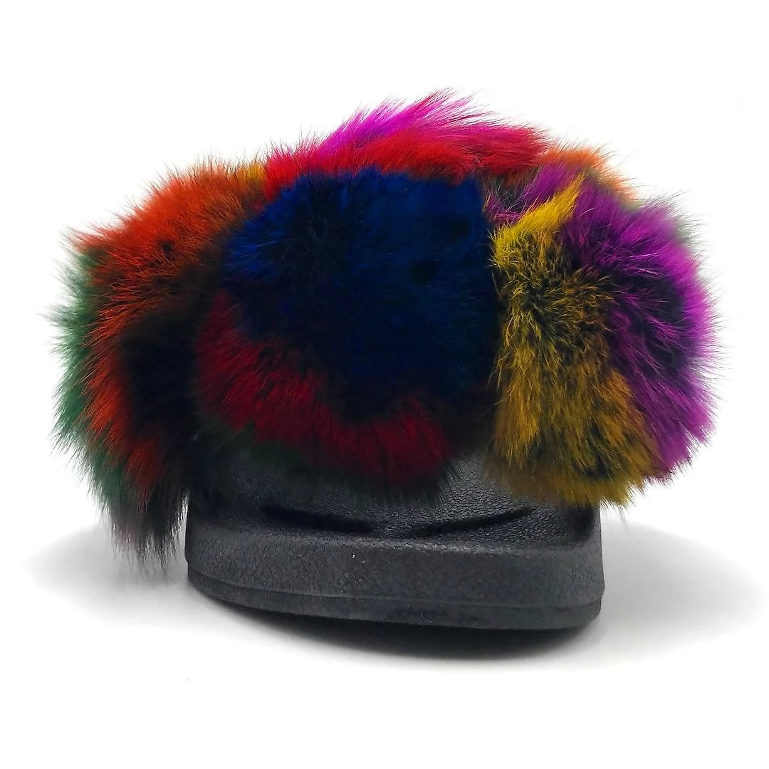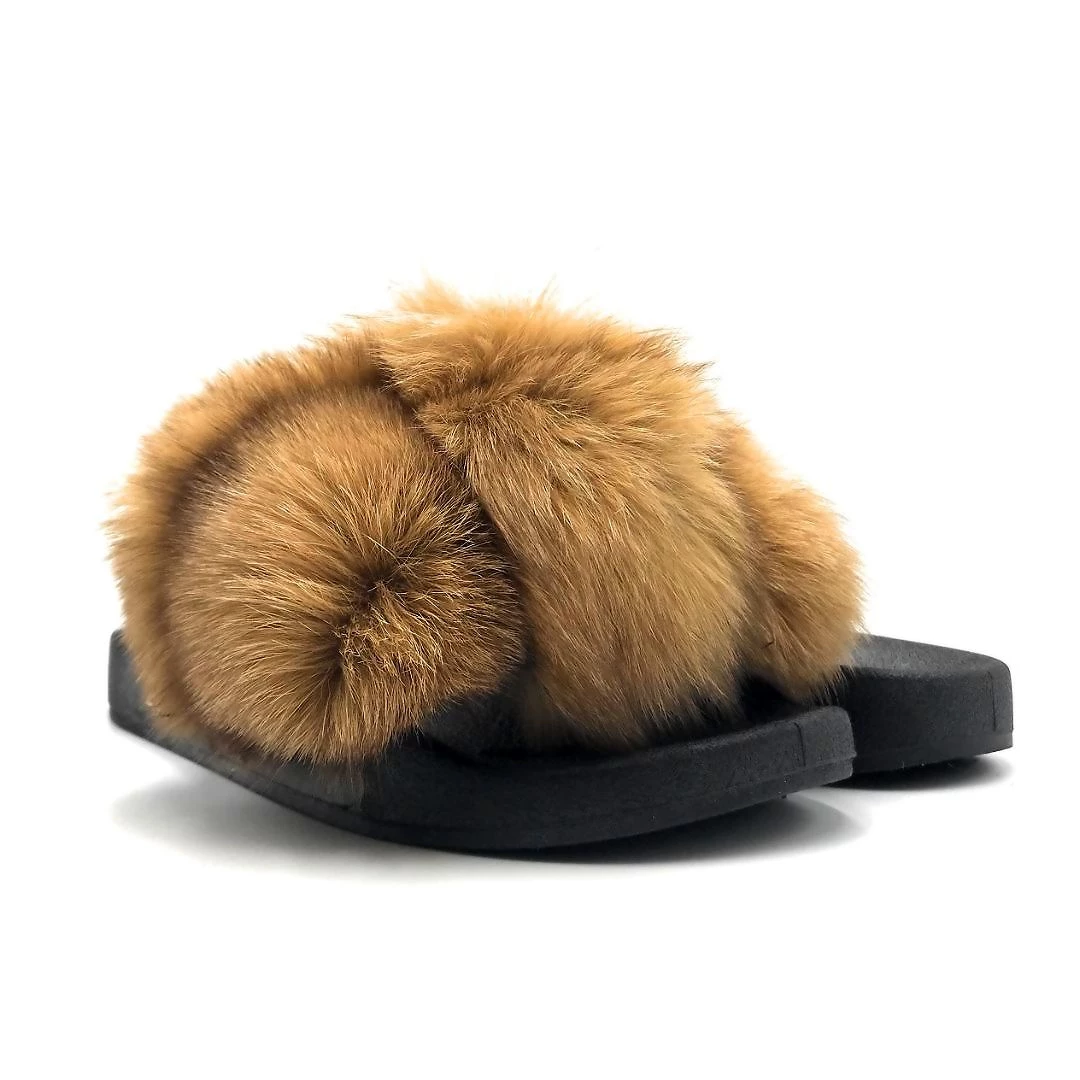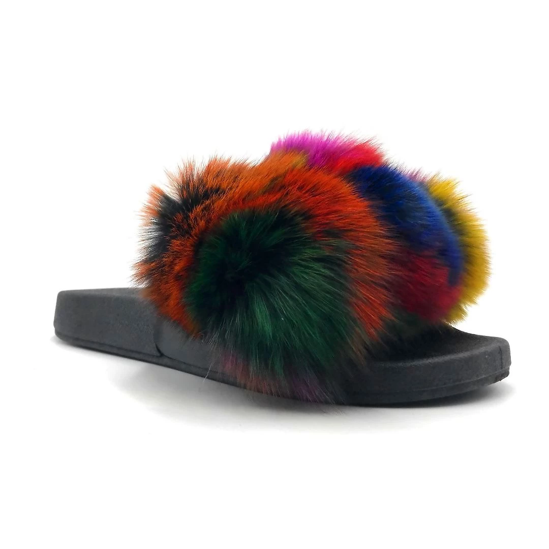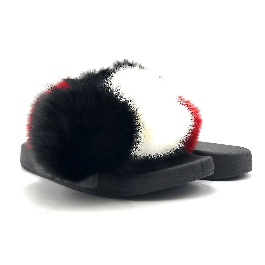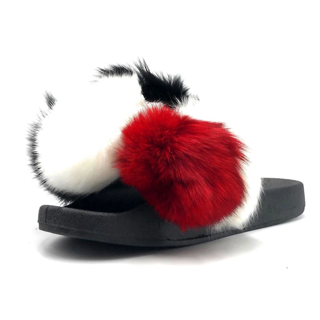 Pazzle Fox Fur Ball Pompom Slides Slippers For Women
