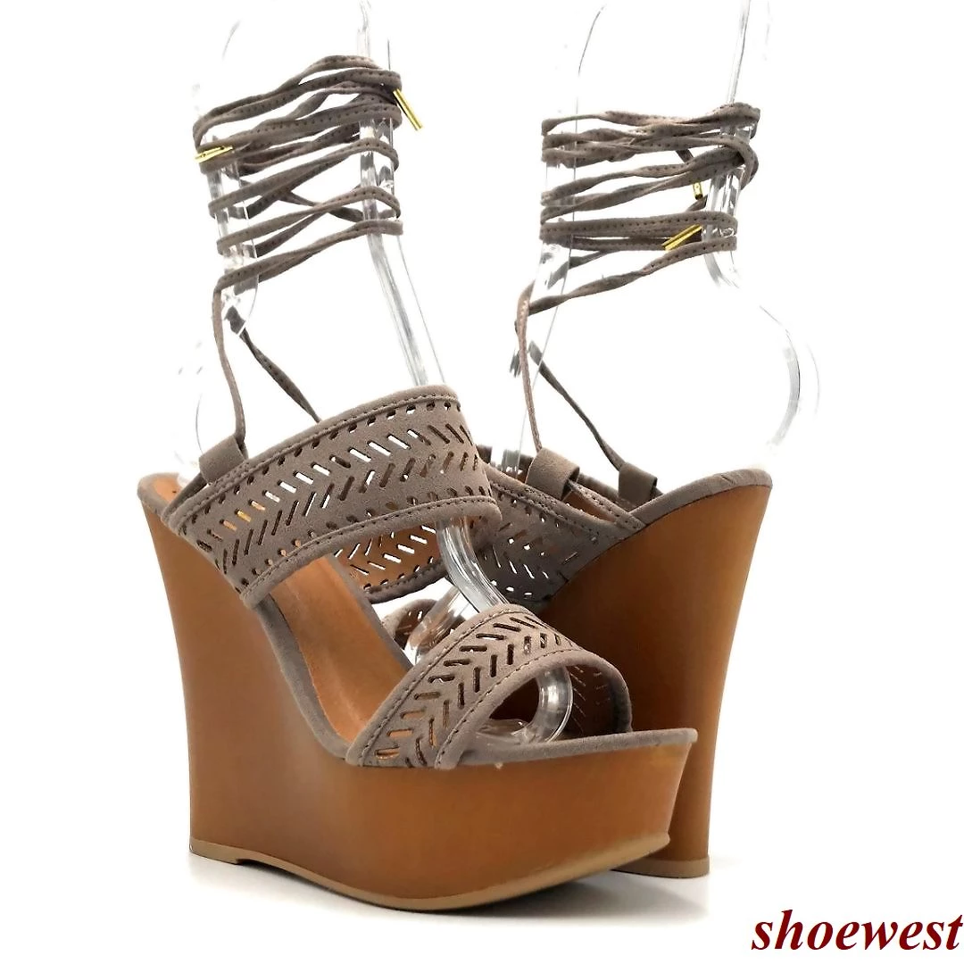 - These Wedge heel with sexy lace-up closure making the legs more defined. These heels have beautiful styled braided bands across the toe and foot bed. They are comfortable and stylish with a platform.