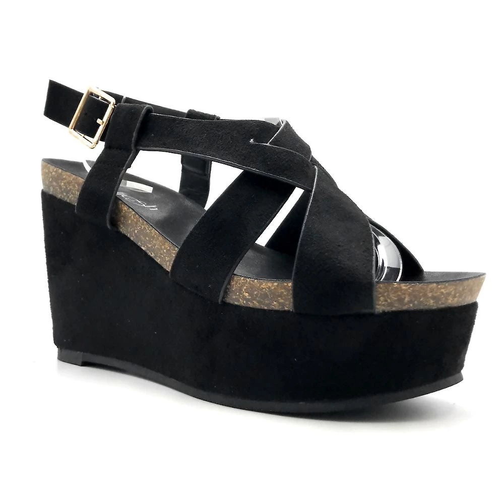- Put your best foot forward with these platform wedges! Made out of faux suede, these wedges feature a super cozy cork insole for extra comfort and an adjustable ankle strap for easy on/off access. The platform wedge gives these shoes some extra height and sass.