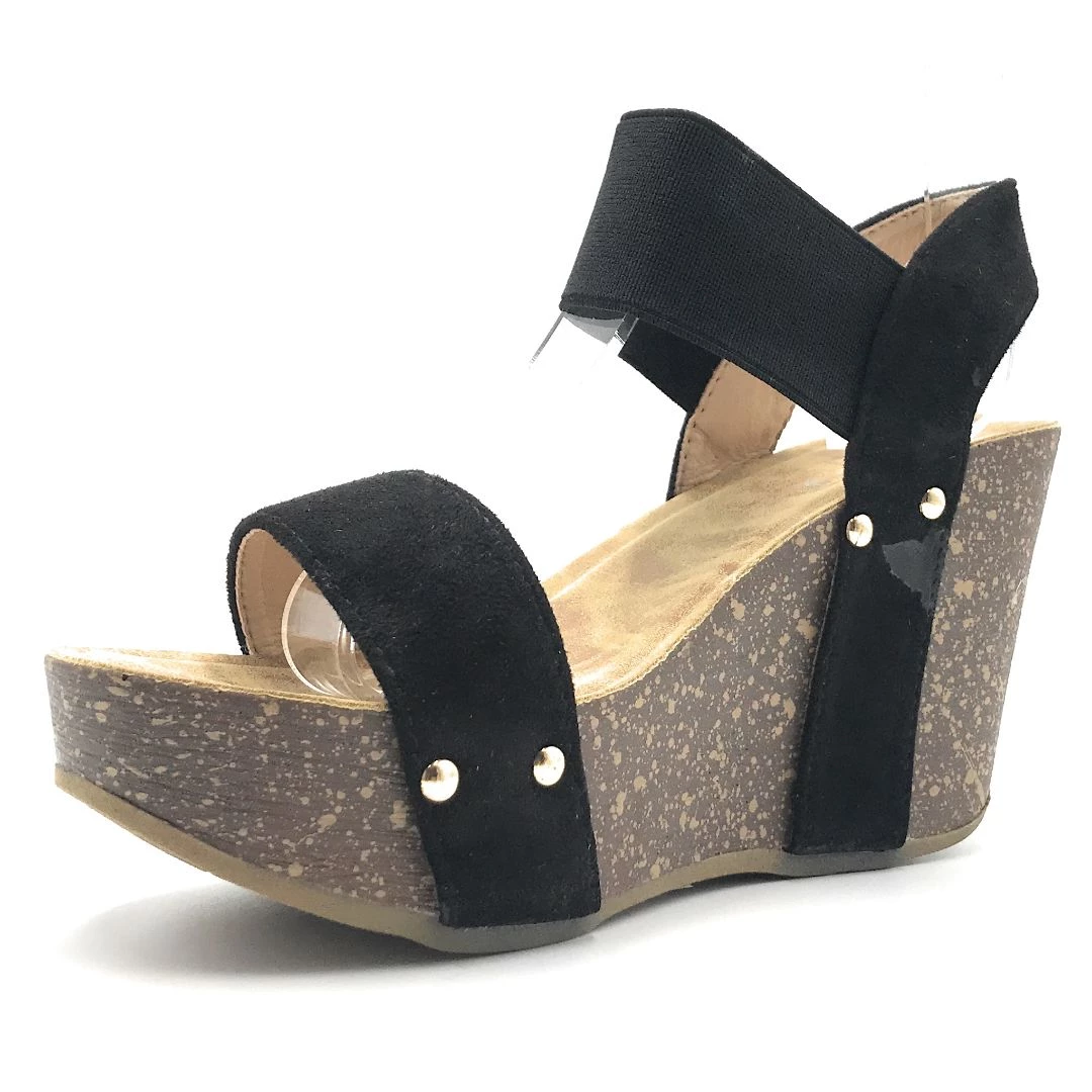 Refresh Cork Wedge High Heel with Side Metal Stud And Elastic Strap for Easy On/Off Women Sandals