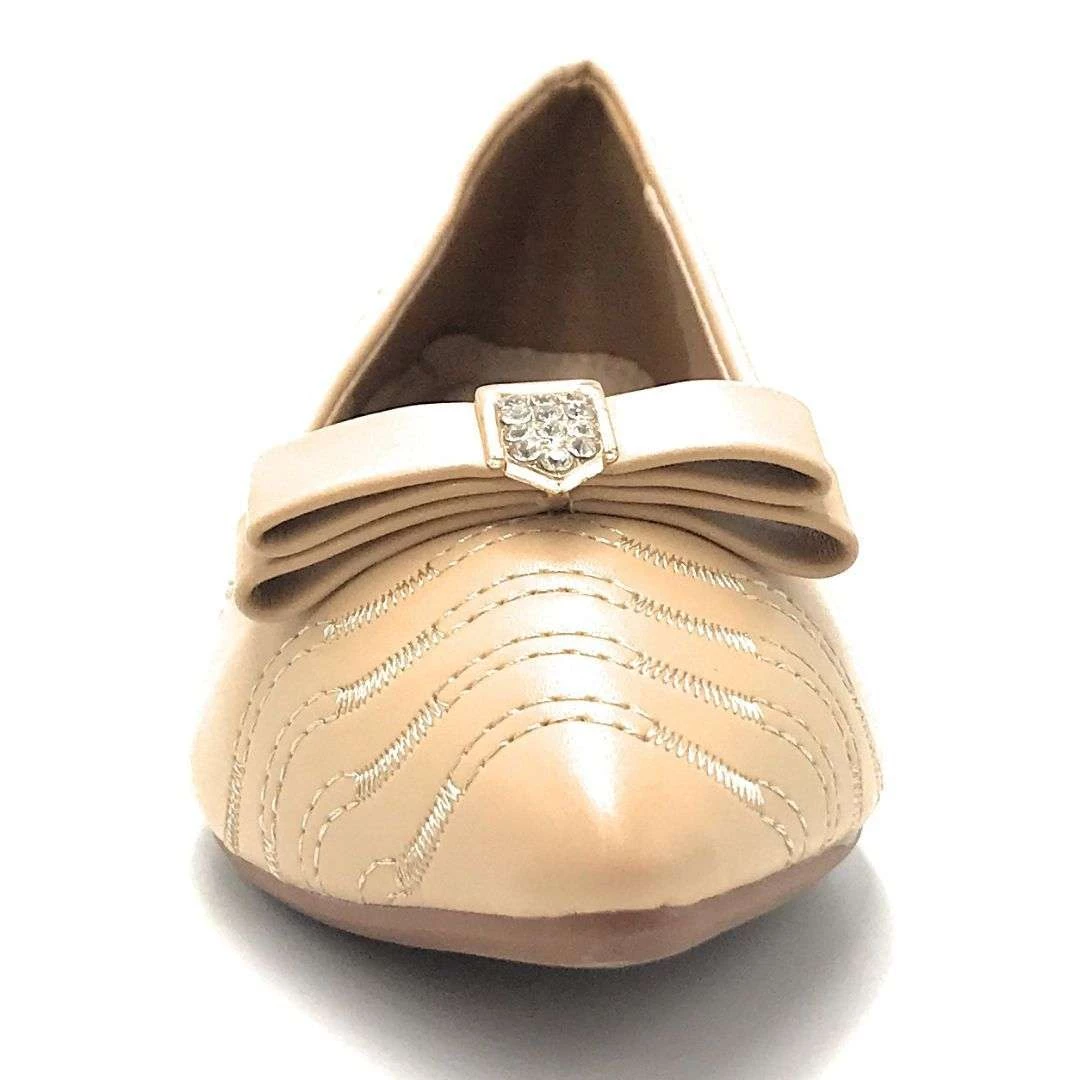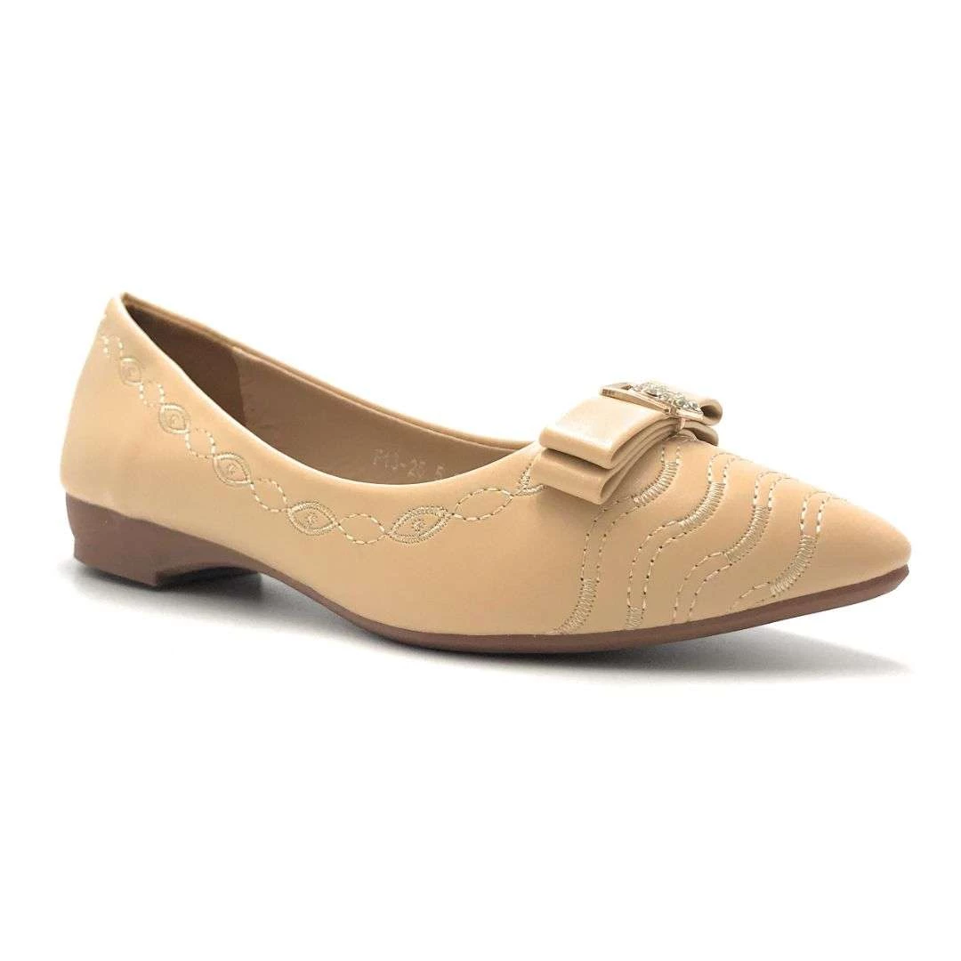SBUP Comfortable Ballerina Pump pointed Toe Stitched Pattern Rhinestones Bow Slip-on