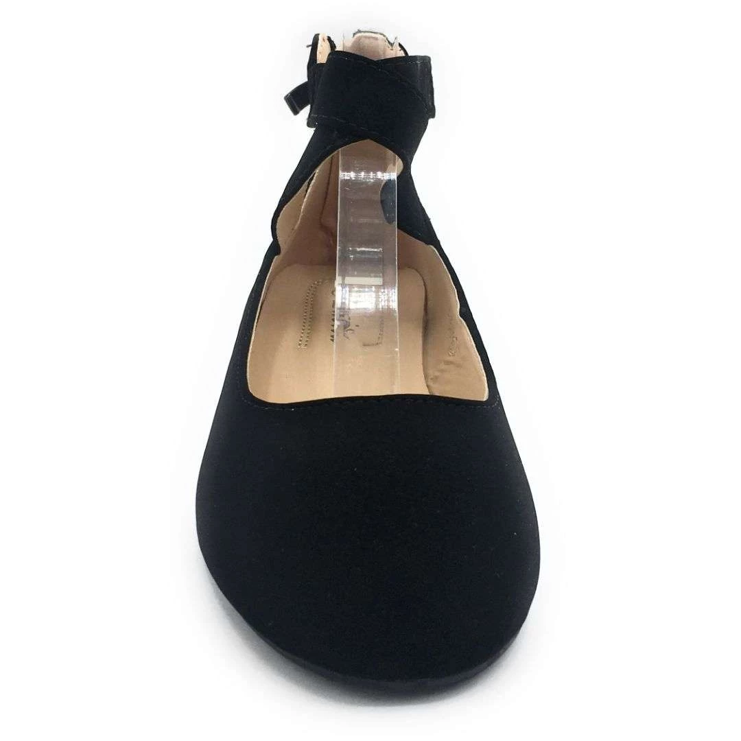 SBUP Comfortable Ballerina pointed Toe Stitched Nubuck Material Criss Cross strap Slip-on