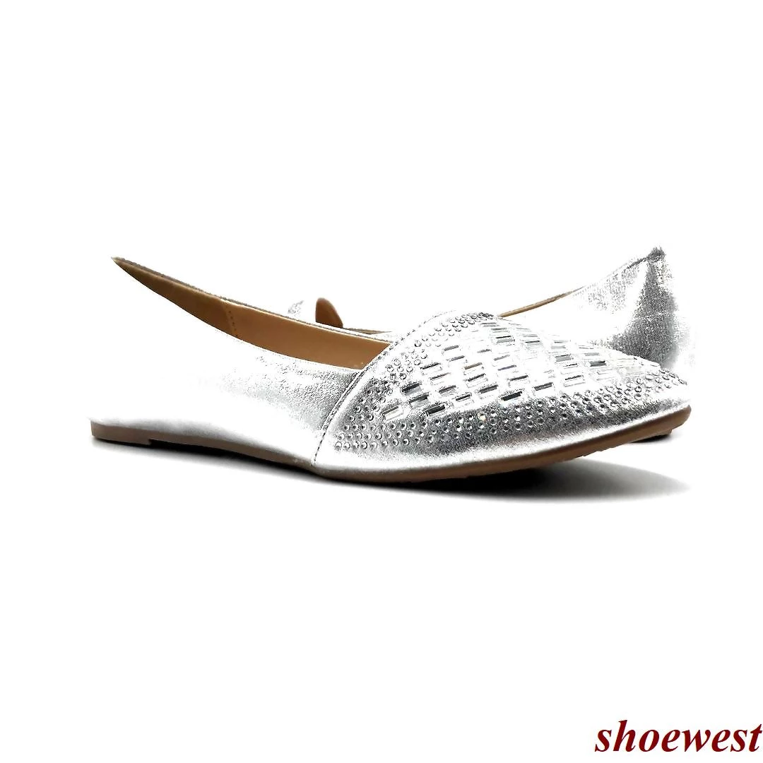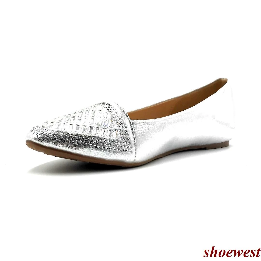 SBUP Comfortable Ballet Patterned Rhinestones Covered Flats