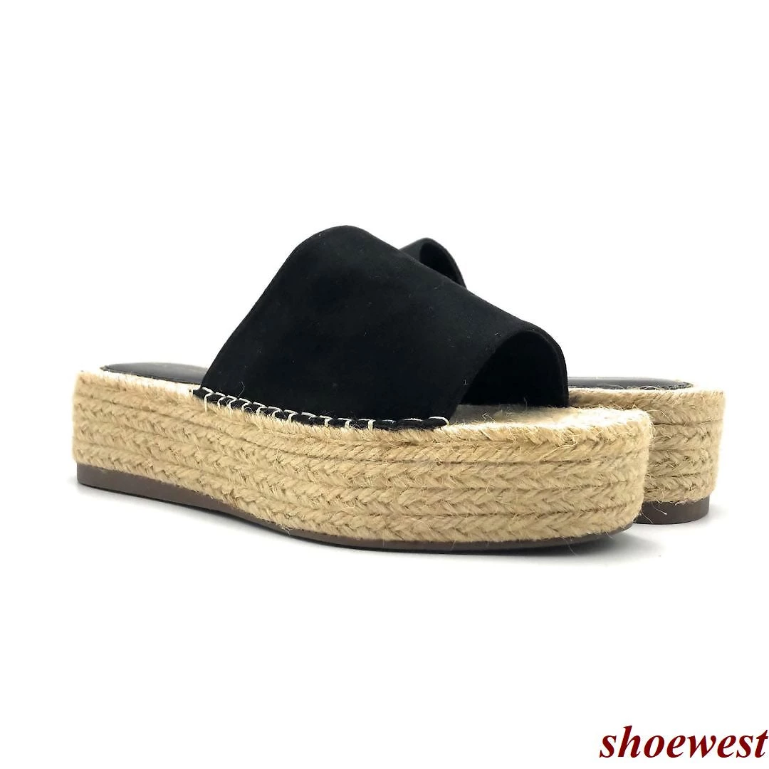 - Keep it simple in these espadrille wedge sandals featuring a smooth upper band, on a short platform rubber bottom for added comfort.