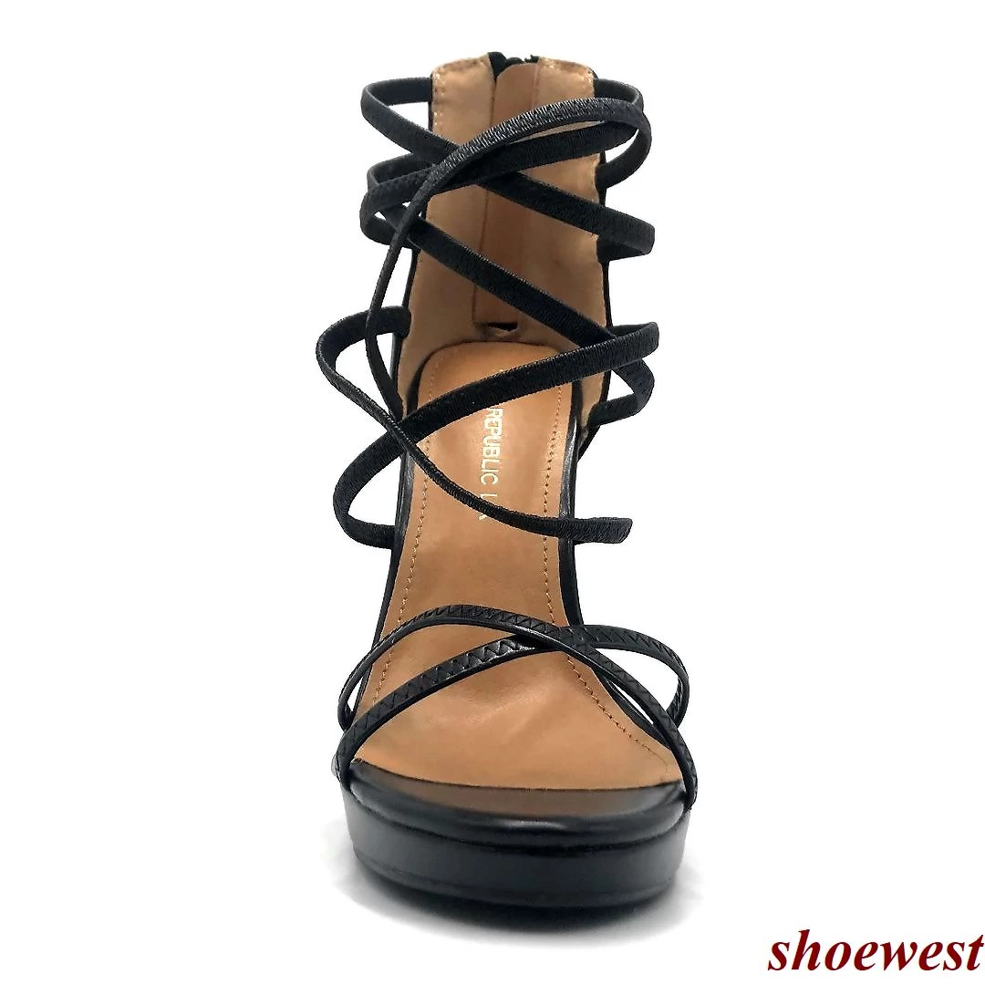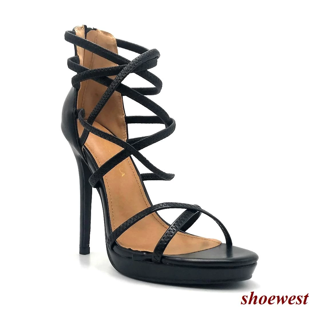 Shoe Republic Criss-Cross Strap all Over with back Zipper Stiletto Heel Sandal