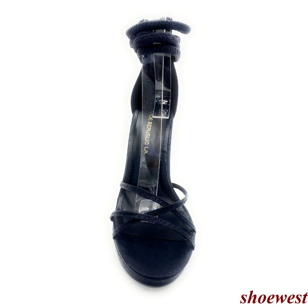 Shoe Republic Fabric Ankle Wrap Zip closure Crisscross Toe Strap Platform Stiletto Heels