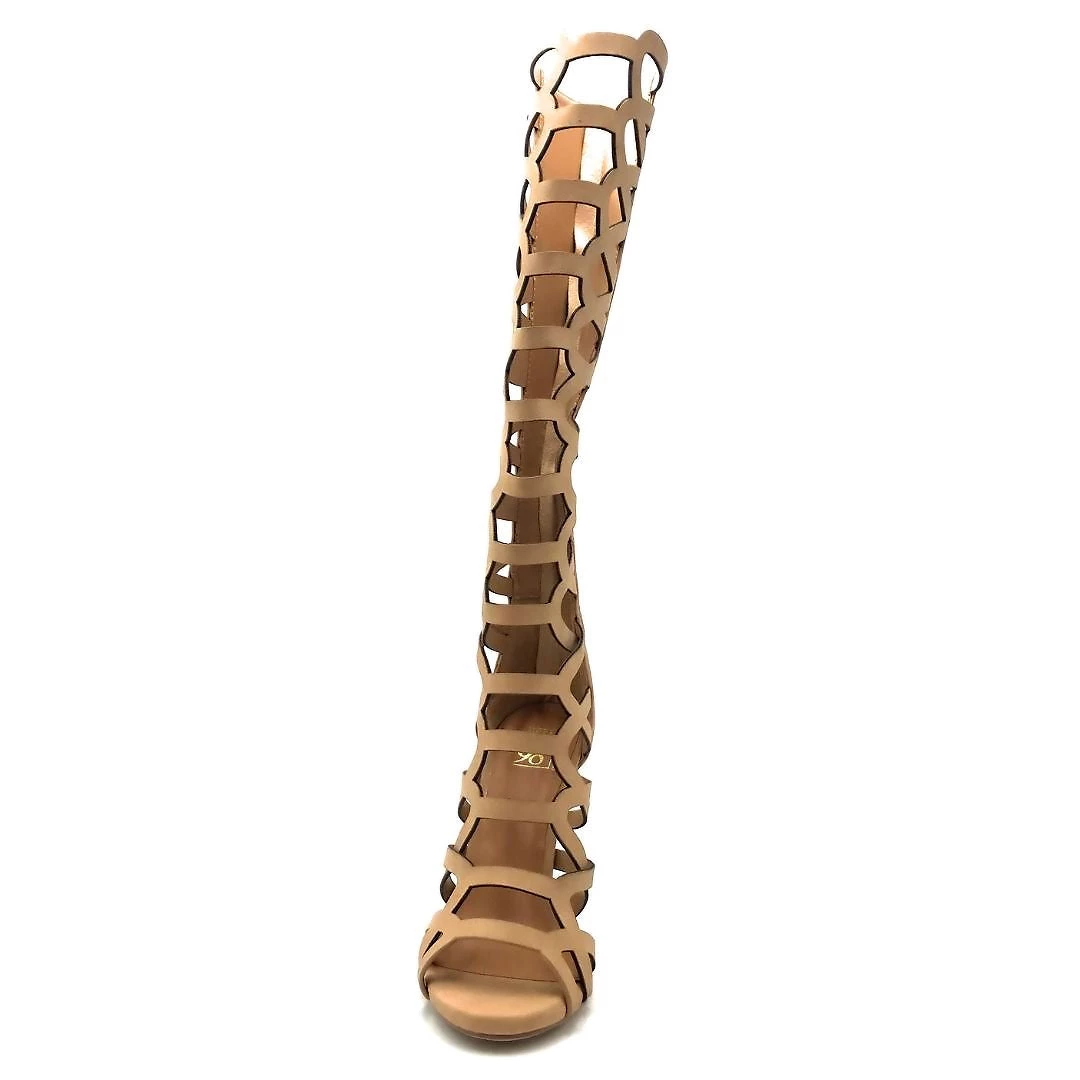 Speed limit 98 Women’s Knee High Strappy Caged Cut Out Open Toe Dress Sandal