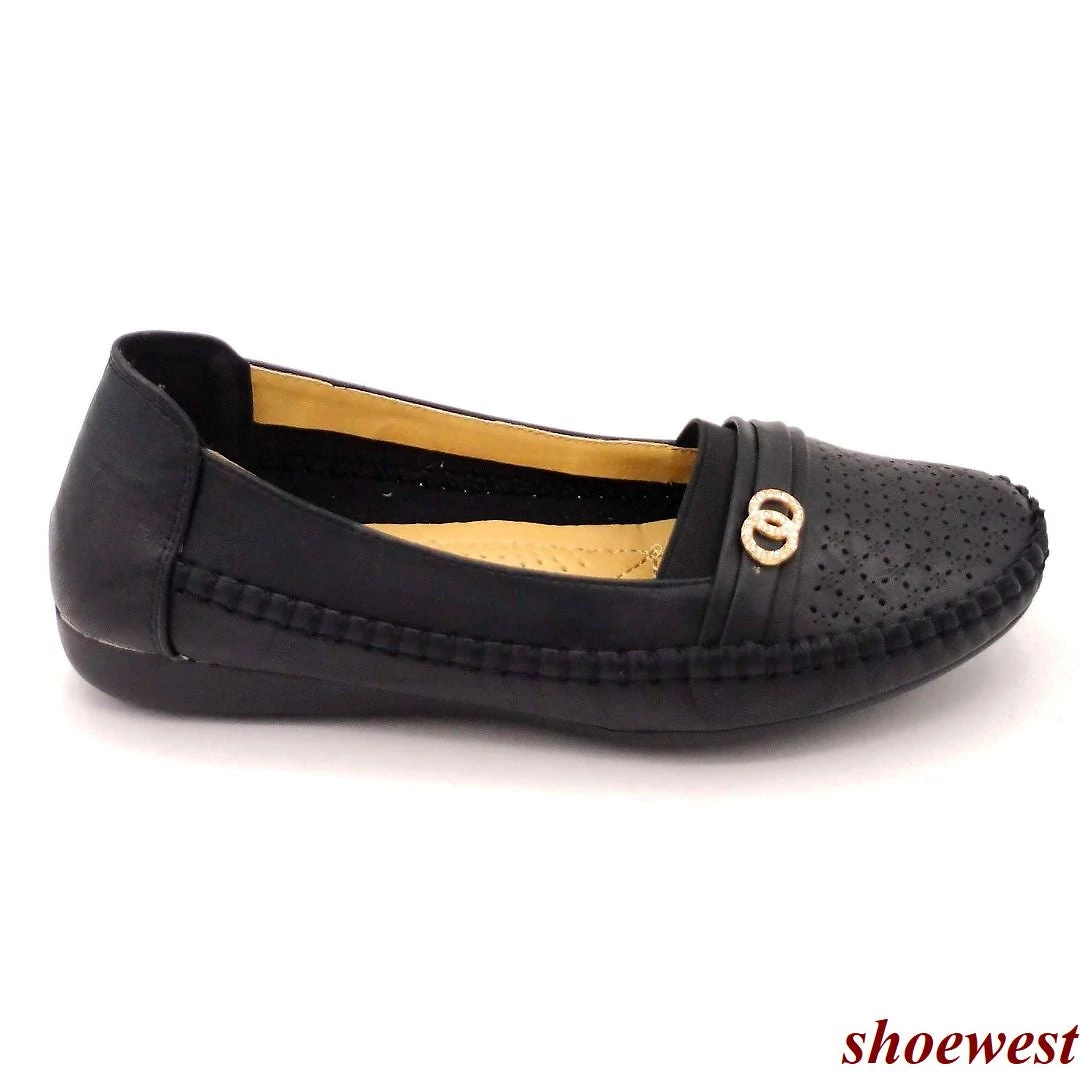 - Ladies slip on shoe with low heel in stitch detailing and a soft insole, Leather uppers