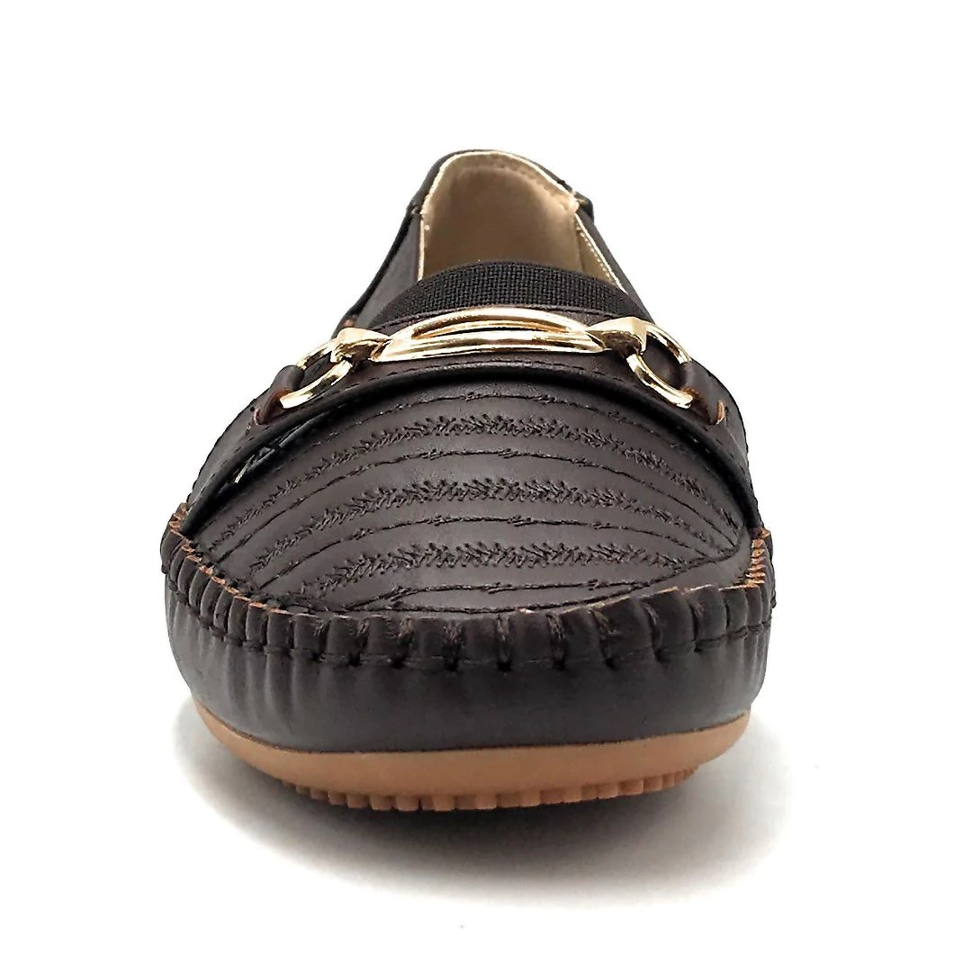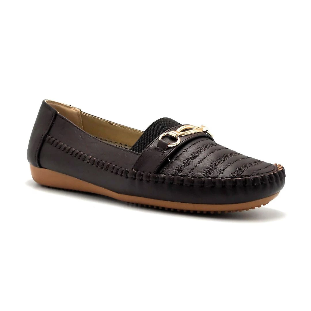 - Classy machine embroidered round toe with a buckle on top to increase its elegancy
