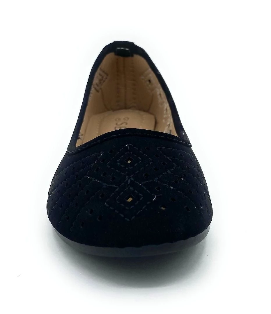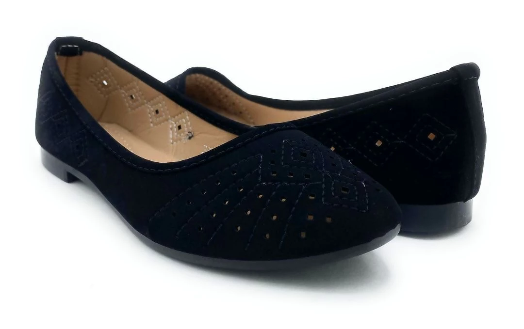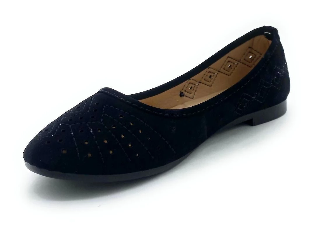 - The always-perfect ballet flat gets a delightful update with petite, laser-cut perforations and contrast stitching that elevate the look.