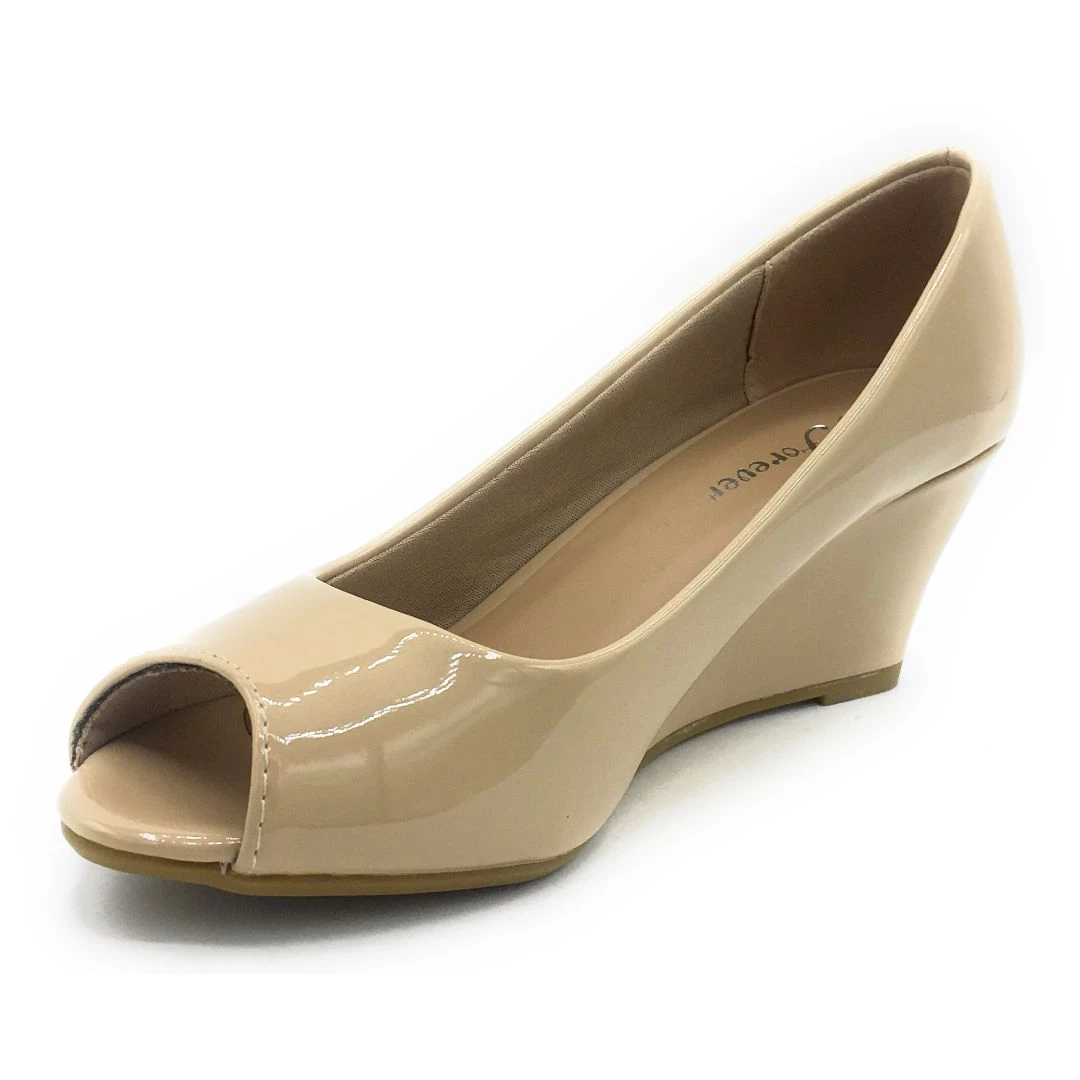 Forever Mid Heel Fashion Comfortable Dressy Work Wedge Peep Toe Shoe