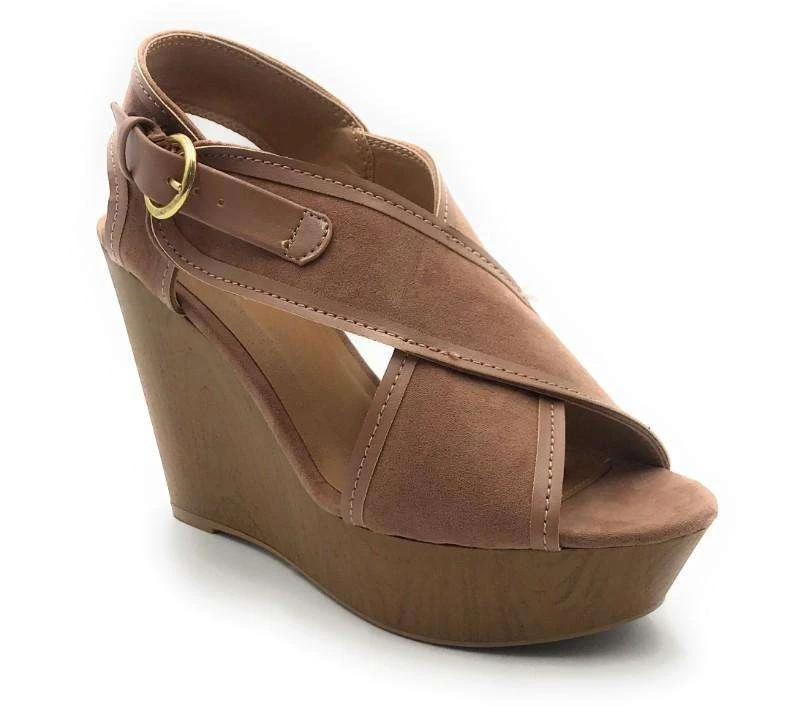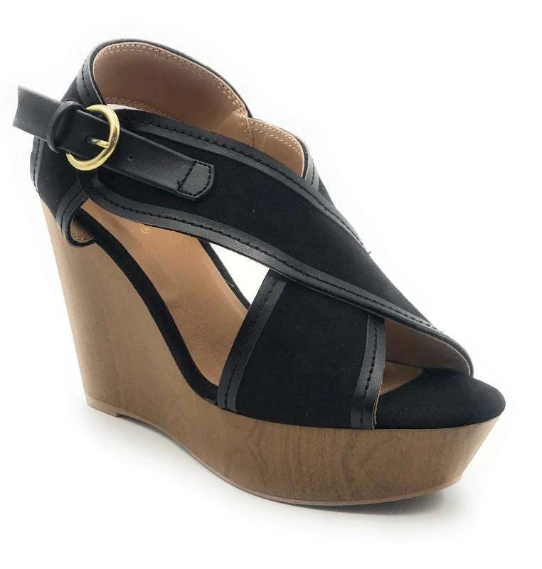 Qupid Platform Wedge Sandal Open Toe Suede Material Adjustable Buckle Ankle Strap Mid Heel New Fashion Evening Women’s Shoes