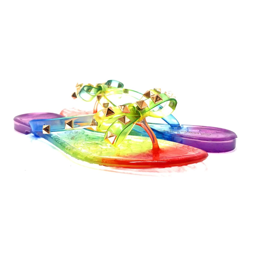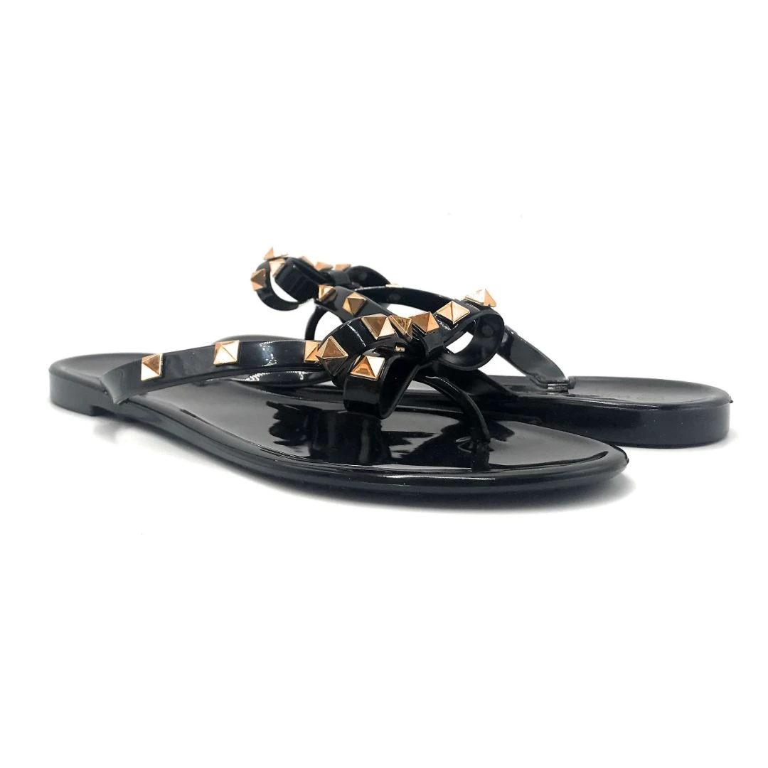 - Turn your walk into a priceless fashion tale by embracing these flat studded jelly sandals that are the desk to dinner style partner and channel your fab style