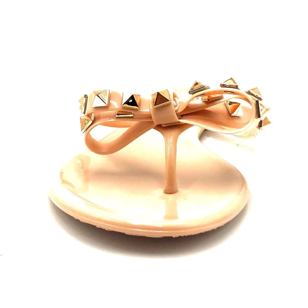 Wild Diva TRENDY JELLY MATERIAL STUDDED BOW KNOT BAND THONG SLIPPER